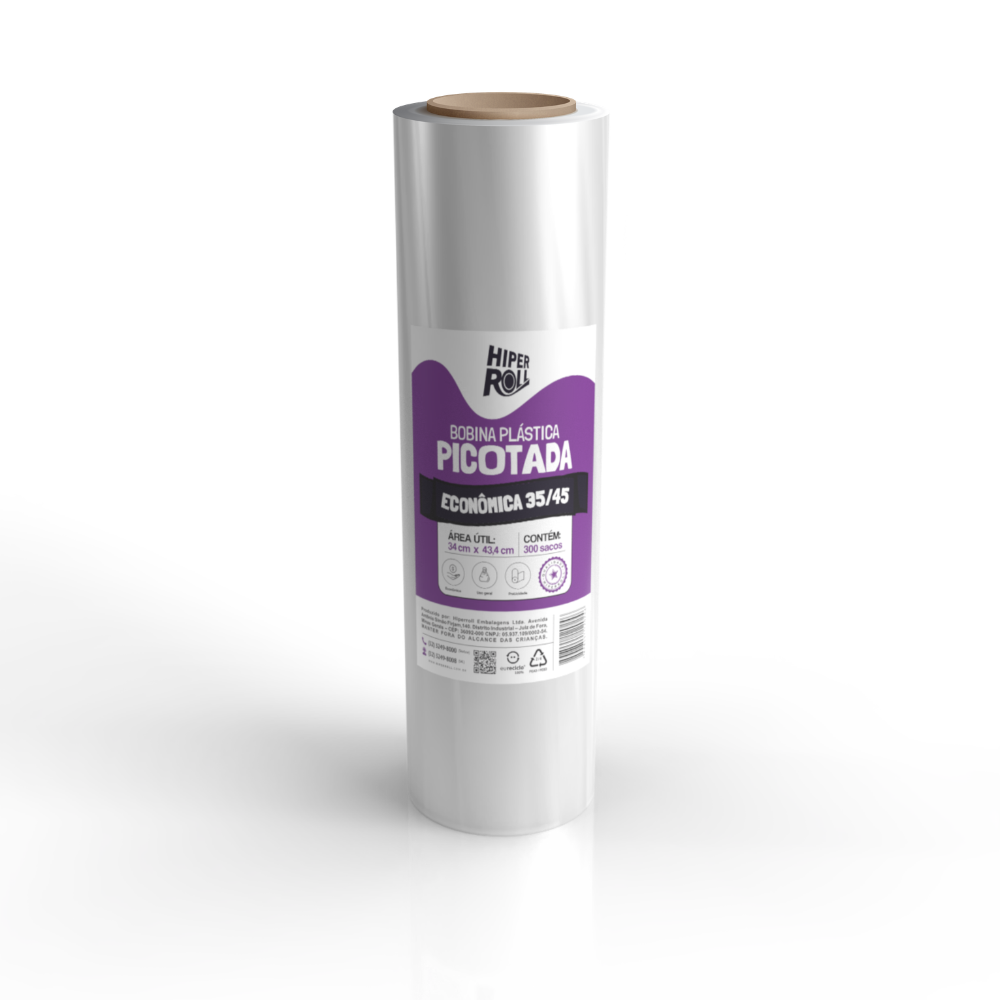 As Bobinas Picotadas Hiperroll são produzidas através do processo de extrusão de filmes tubulares que exibem características de boa resistência mecânica, excelente resistência ao impacto e boa soldabilidade. Podem ser lisas ou com impressões personalizadas, sendo fornecidas em várias dimensões. Possuem acabamento de fundo estrela e são embaladas em caixas de papelão, padronizadas de acordo com cada medida